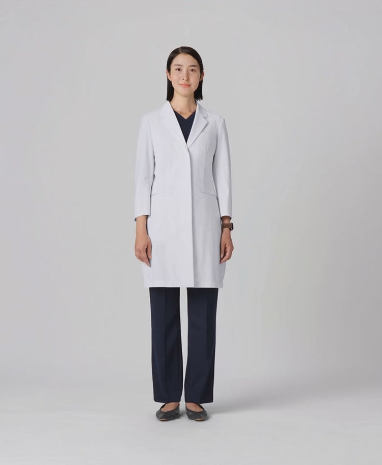 衣長較長的醫師袍給人一種正式而有品味的印象。而在克萊希女款醫師袍中新登場的中短版輕盈澤西醫師袍帶有流行感的衣長絕佳,給人親切的印象。(M號尺寸 總長:短袍 73cm)